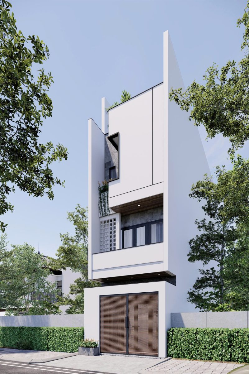 Mẫu nhà phố 4 tầng 1 tum mặt tiền 5m được thiết kế theo phong cách hiện đại, đường nét tối giản nhưng sang trọng. Mặt tiền rộng 6m cho phép bố trí hình khối cân đối, ban công thoáng và hệ cửa kính lớn giúp lấy sáng tối ưu, mang đến không gian sống thông thoáng và thẩm mỹ cao.